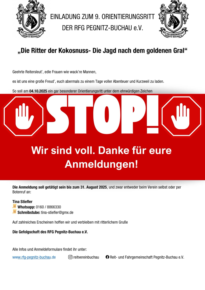 Am 07. Oktober 2023 findet unser 8. O-Ritt statt🙌🏼